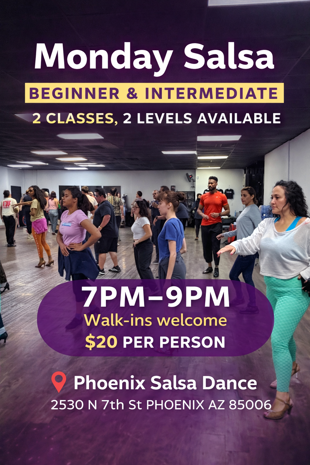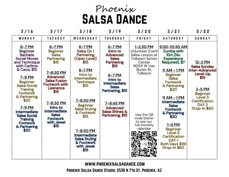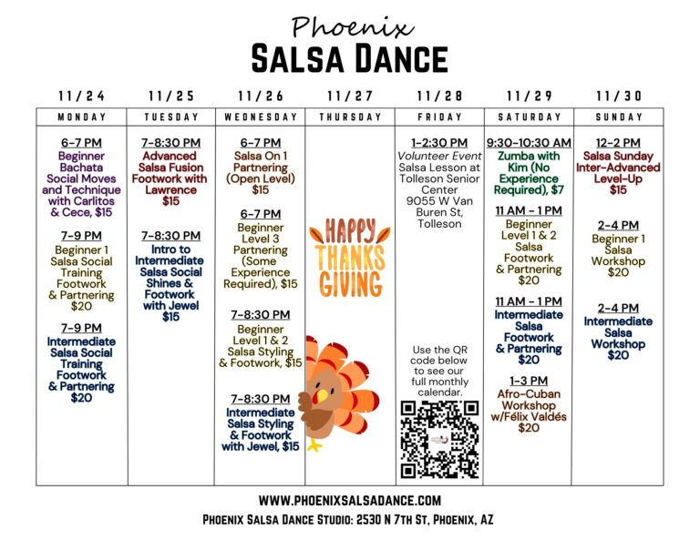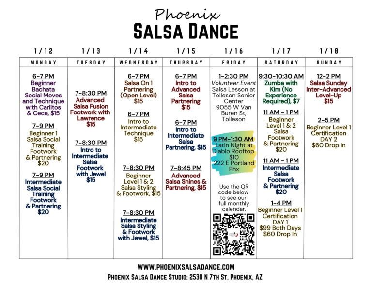 Central Phoenix’s number one studio for Salsa group dance lessons, private instruction, and Latin Dance events.